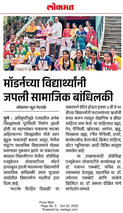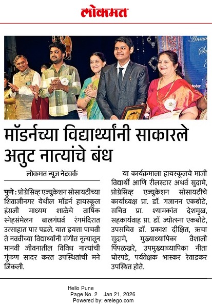 I appreciate the dedication of Mrs. Vaishali Pimpalkhare, newly appointed Headmistress of the school, I am sure she will continue to bring laureals to the school. I also appreciate the staff members for making Modern one of the reputed school in Pune city.